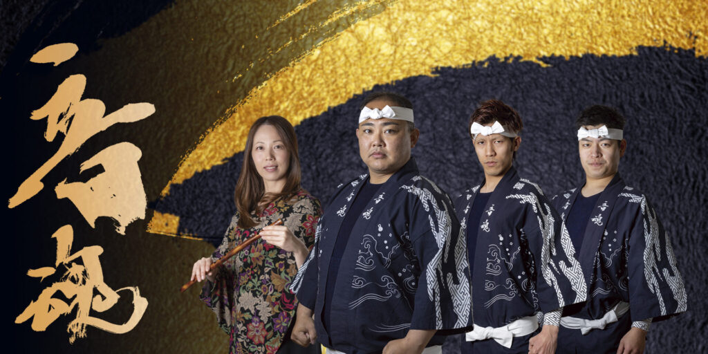 まといの会は、愛知県安城市を中心に活動する和太鼓団体で、若手演者を中心に編成されています。全国大会や海外公演の実績もあり、勢いと実力を兼ね備えたプロフェッショナルチーム。演奏はもちろん、ダイナミックなパフォーマンスと若さあふれる演出も注目ポイントです。