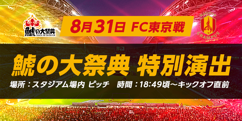 8月31日(日)に開催される明治安田J1リーグ第28節FC東京戦(19:00キックオフ@豊田スタジアム)のキックオフ直前に、松平健さんが率いる特別応援部隊による場内特別演出として出陣式を行います。